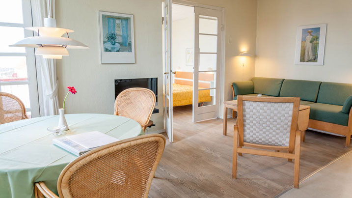 20 veludstyrede ferielejligheder med eget køkken, adgang til svømmehal, 2 saunaer, fri wi-fi, udendørs legeplads og egen p-plads. Der er ca. 300 uger om året til udlejning, resten benyttes af ejerne selv. Ledige uger og udlejnings priser mm. finder I på hjemmesiden for Skagenklit A/S. Kontakt os gerne for yderligere informationer.